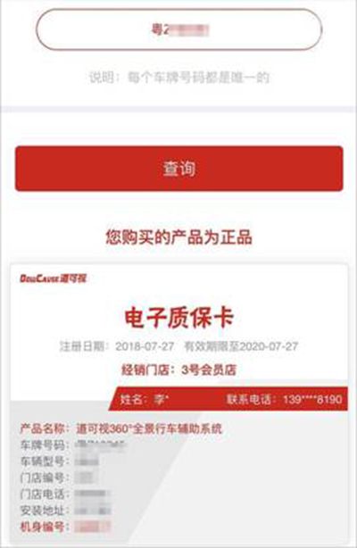 ▲道可視電子質(zhì)保卡