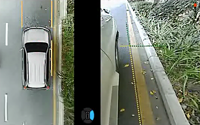 針對這一場景,道可視的“停靠路崖模式”在倒車檔模式下開啟雙閃時(shí),會將車身兩側(cè)(整個車身、前后輪、踏板等)同時(shí)顯示,以這種近場垂直的鳥瞰圖顯示方式,配合安全參考線(與車身距離為20CM),有效的解決了??柯费聲r(shí)可能對輪胎及輪轂造成刮傷的問題。