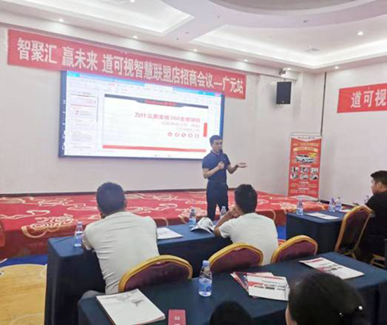 對于大家普遍所關心的智慧聯(lián)盟店政策,道可視大區(qū)經理陶佩重點進行了詳細的講解,他表示,智慧聯(lián)盟店是從省代到城市運營商到智慧聯(lián)盟店再到終端車主的360°全景行車輔助產品新型銷售模式,最終將完成4000家智慧聯(lián)盟店的“小目標”。