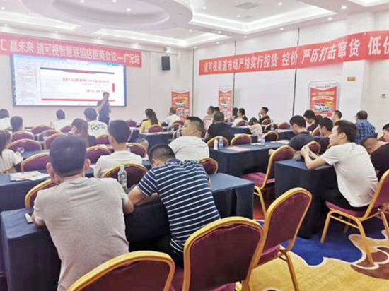 會議尾聲,道可視運營商彭總再次上臺,針對合同簽訂現(xiàn)場加盟做了簡短講解,他堅信最終將達成智慧聯(lián)盟店4000家的小目標。
